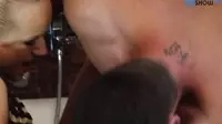 In the throes of passionate lovemaking, he begins to pleasure her with an intimate footjob, as they lie back in their luxurious bathtub surrounded by candles and sensual scents that only add to the intensity of their passion-filled moment.Her body trembles with excitement, and she eagerly spreads her legs wide open, displaying her shaven cunt, dripping wet with desire for his attention.He wastes no time, as he carefully slides one foot up and down on the sensitive folds of her pussy, causing her to moan in pleasure.As he massages her labia with his toes, she grabs a hold of his throbbing cock and strokes it with her other hand, mirroring the movements that are taking place below.Their bodies become one, as they move together in perfect harmony their hands exploring every inch of each other while their eyes remain locked, conveying the passion and love that exists between them.The water in the tub becomes disturbed by their thrashing, but it only adds to the intimacy of this shared moment.In an intense burst of passion, her hands fly down to his feet, guiding them between her legs for a more intense footjob, her wet cunt greedily sucking at the toes as he drives his cock even deeper into her hungry snatch.Her clit is rubbing against his hand, desperately seeking relief in this whirlwind of pleasure and desire that they both so eagerly crave.The walls around them blur as they lose themselves completely to their sexual fervor, sharing an experience that only love could provide.As their climax nears, he continues to work on her clit with his tongue, lapping at the engorged nub while his toes massage the swollen folds of her pussy, pushing them ever closer to the brink of ecstasy.Their breathing grows heavier and more rapid, bodies drenched in a mixture of water, sweat, and passion as their love-making becomes even more fervent and intense.In a crescendo of satisfaction that neither had anticipated, she arches her back off the tub floor, pressing her feet into his hand while her pussy clenches and unclenches around his cock, her orgasm sending vibrations through his own cock, leading him to deliver a powerful shot of his warm load deep inside her.Breathless and shaken by the intensity of their passion, they collapse into one another's arms, hearts pounding in unison with their love for each other.Their eyes remain locked, as if to say, We have found our soulmate.As they catch their breath, they relish in the warmth that surrounds them and the intimacy of a shared experience that will forever be etched into the tapestry of their lives, both individually and as one.In the end, their love-making session comes to a close with their lips locked tightly together and their eyes glazed with satisfaction, knowing they have tapped into something deeper than any they had experienced before an unbreakable bond that only grows stronger with every touch, every kiss, and every breath they take alongside each other.